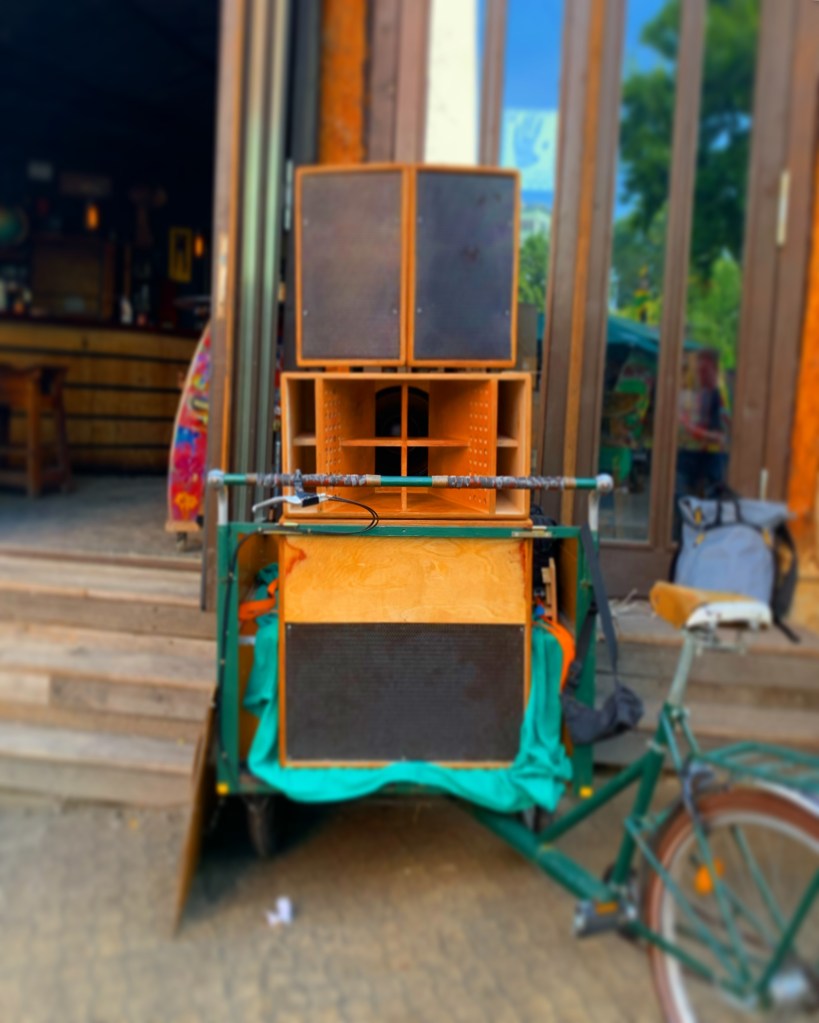 Rolling Lion Hi-Fi is a beautifully handcrafted, fully battery-powered soundsystem, based in the southeast of Berlin! As of June 2023 the system has been entirely overhauled, with updated subwoofer, brand new Paraflex kick section, and more efficient mid-tops. Utilizing the highest quality Eighteensound neodymium drivers enclosed in precisely constructed enclosures made of 15mm Baltic birch plywood, the system delivers quite a punch for it’s minimal footprint! Mounted on our custom-made cargo bike, it becomes the perfect instrument for mobile events, off-grid open airs, bike demonstrations, or even small festival floors! Feel free to get in touch if you’d like us to get involved in your event.